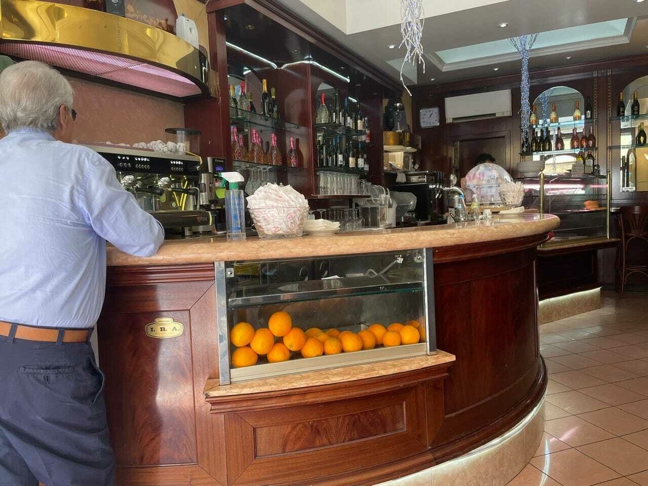 Vid 18-tiden gav vi upp, gick tillbaka till hotellet och tänkte att vi bara vilar på rummet. Men efter någon timme så började vi undra om inte vi skulle köpa något litet att käka. Kanske på Coop som ligger på hyfsat promenadavstånd från hotellet. På vägen förbi receptionen frågade vi, som en ren chansning, om de visste något matställe som var öppet (mycket är stängt eftersom italienarna själva har semester). Receptionisten tipsade om den närmaste pizzerian, som visade sig vara öppen. Och därtill en absolut sagolik upplevelse.
