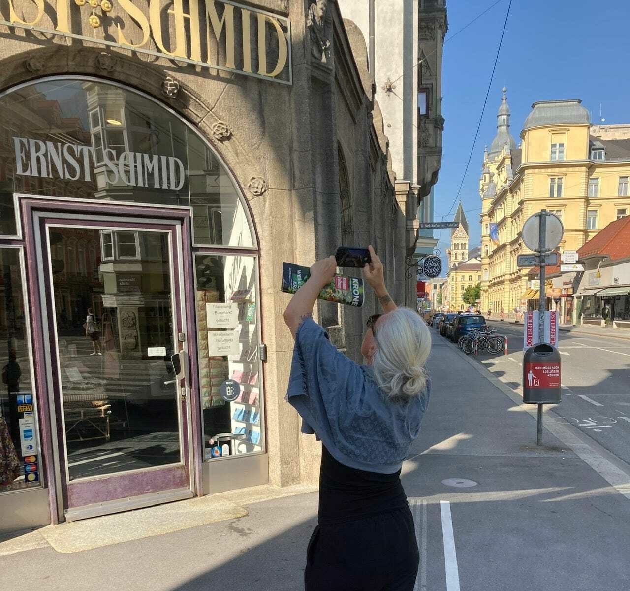 Vi har haft en underbar dag i Innsbruck. Vi sov gott på hotellet, vaknade till en söndagsmorgon med strålade sol och gick på stan för att äta frukost. På väg till frukost, på väg från frukost, på väg vartsomhelst så har Caroline fotograferat.