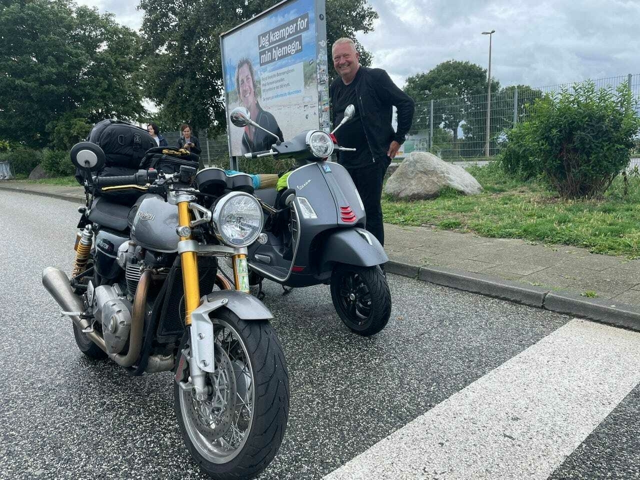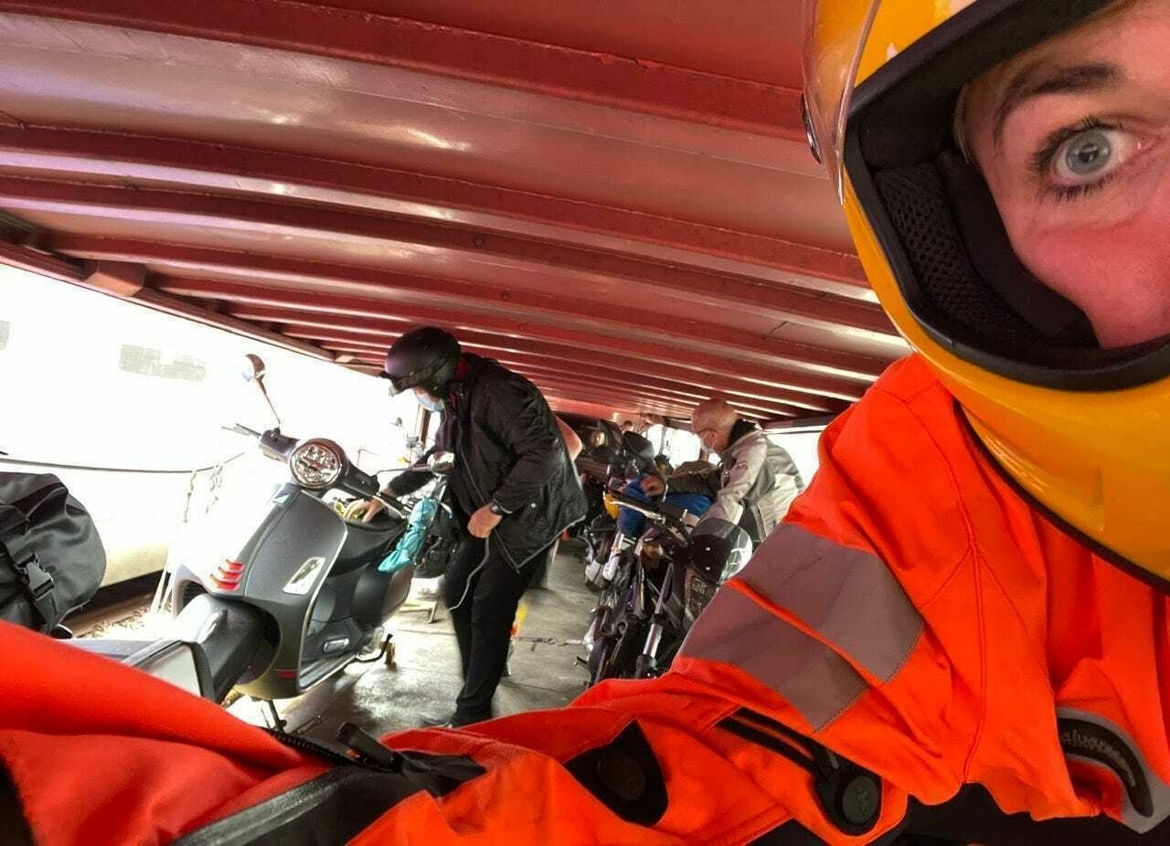 Det regnade. Tungt och ganska svalt regn. Dagen innan hade vi badat i Innsbruck med 32 grader, dagen före det hade vi kört långa distanser i 37 grader. Nu körde vi i 17-gradigt regn. Redan efter en timme var vi fullständigt genomblöta. Till och med Caroline som har bra mc-regnkläder blev dyngsur, mitt slitna regnställ hade inte en chans när regnet kom uppifrån och från sidorna i form av hjulstänk från trafiken runt om. Vägen till Puttgarden från Hamburg brukar vara enkel, med en och annan kö precis när man närmar sig Fehmarn. Nu var det en ren pärs kombinerat med en milslång kö innan bron till Fehmarn. Trots mitt yppiga underhudsfett frös jag så att jag skakade när vi kom fram till färjan i Puttgarden.