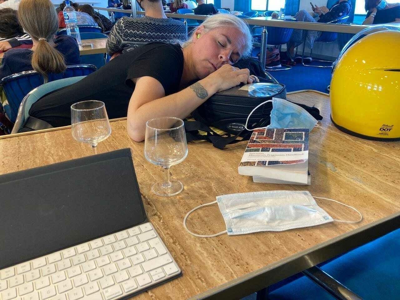 Vi har fått använda mask överallt. Och visa Covid-pass på bland annat hotell, restauranger och utomhusbad. När Caroline gick in på en mack i Tyskland i integralhjälm (helhjälm), för att snabbt betala en tankning, blev hon genast tillsagd att gå ut och sätta på sig ett munskydd istället. På bensinstationscaféer i Italien var vi tvungna att visa Covid-pass om vi skulle sitta inomhus. På färjan från danska Rødby till tyska Puttgarden fick vi fylla i en Covidspårningsblankett, så att de skulle kunna nå oss om någon annan på färjan visat sig vara smittad. Man fick inte borda färjan till Korsika utan giltigt Covid-pass, detta kontrollerades lika noga som biljetten.