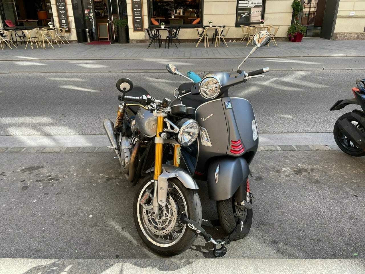 Det enda som var ”dåligt” ur ett utrustningsperspektiv var nog Vespans status, eller brist på status. Genom hela resan har nästintill varenda motorcyklist som vi mött, passerat eller passerats av vinkat till Caroline. Ingen har vinkat till mig. Ingen. Alla har sett den coola svenskan på sin stora retrohoj och hälsat glatt, för att sedan ignorera gubben några meter bakom. Han som verkar vara på väg till den lokala affären för att handla middagsmat. För mig, som alltid hälsar, blev detta lite plågsamt för egot. Samtidigt är detta just en av Vespans fördelar - man uppfattas som lokalt fordon vart man än kommer. Tills de ser registreringsskyltens ”S”. Då är de övertygade om att man har en skruv lös.