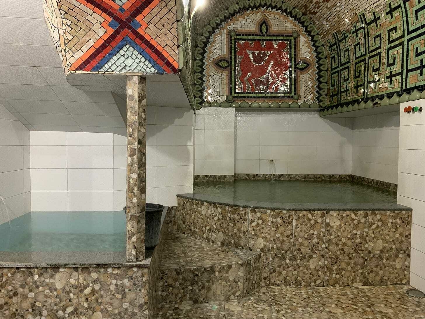 En elektriker som är van vid elinstallationer i våtutrymmen skulle kunna stå ut max 60 sekunder i de enklare badhusens rum, tagit en taxi till flygplatsen för att aldrig mer komma tillbaka. Vissa plattsättare hade gråtit och en svensk rörmokare hade förmodligen blivit vänligt men bestämt utkastad efter hens försök att laga kranen som det svavelhaltiga vattnet runnit ur de senaste hundra åren. För att inte tala om de bisarra installationerna med plaströr för duschen… Det droppar, läcker och flödar över. Överallt. Så är det bara. Och så har det alltid varit. Nästan dygnet runt året om har badhusen öppet så att alla kan bada.
