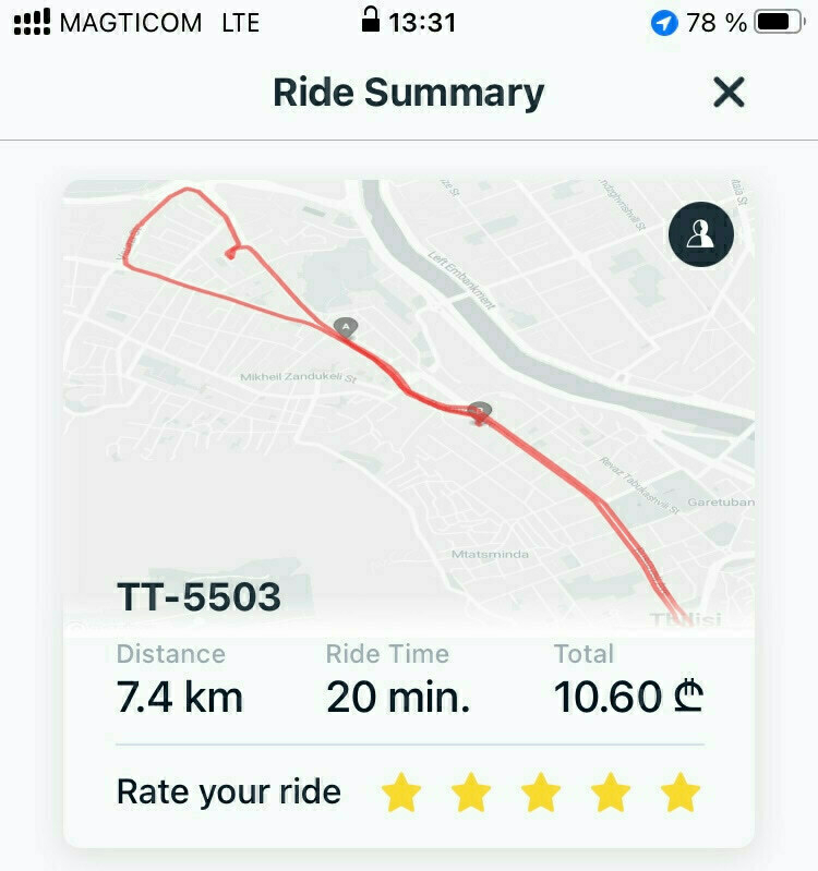 20 minuter senare och med ett leende på läpparna kunde jag parkera efter 7,4 kilometers körning i rusningstrafik. På Rustaveli. Med viktiga lärdomar inför en framtida motorcykelresa hit.